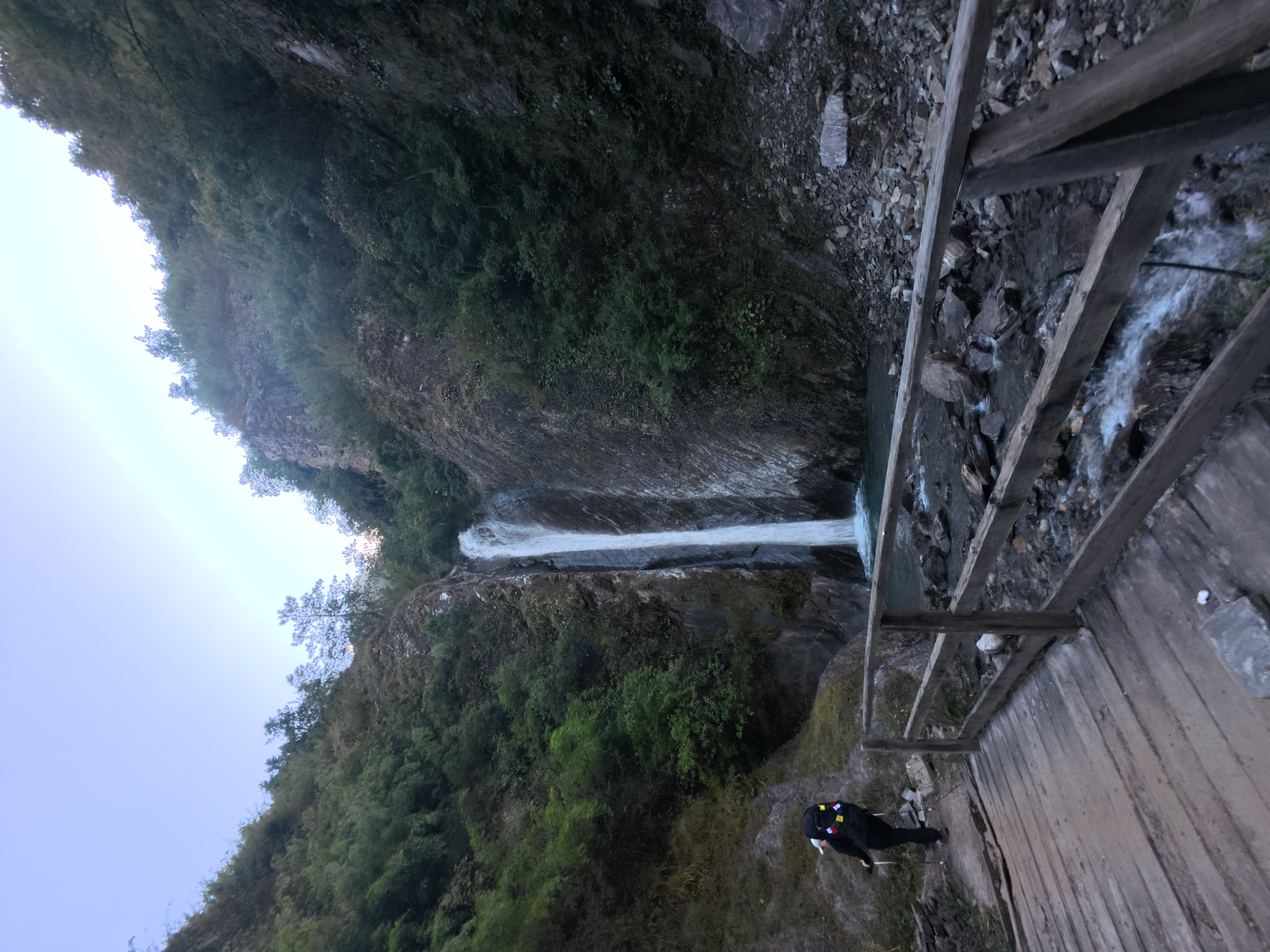 The trail descends from Lokpa through dense forests and rocky paths, offering views of waterfalls and steep cliffs along the Budhi Gandaki. After crossing a suspension bridge, the route gently climbs toward Philim and then continues through bamboo forests and narrow gorges.